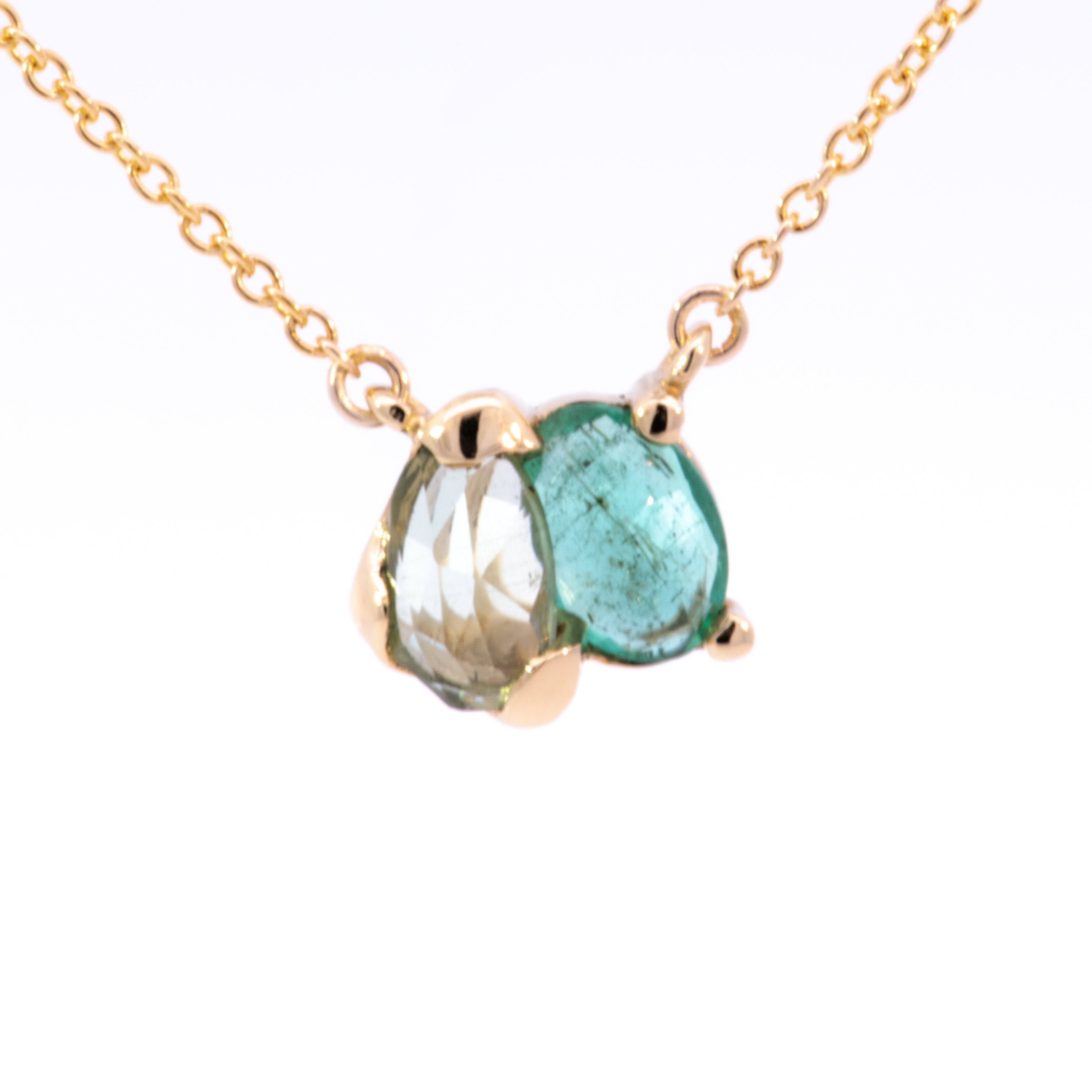 ORGANIC PAIR 9CT GOLD NECKLACE - EMERALD/TOURMALINE I